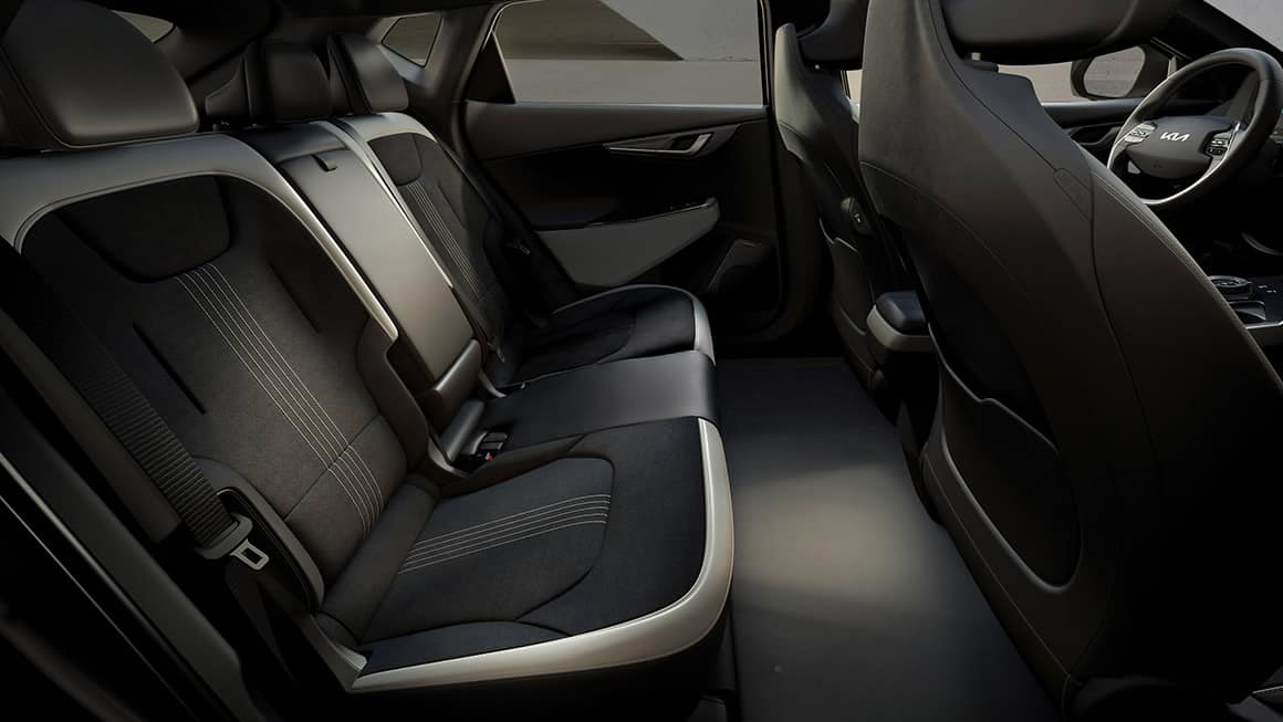 L’EV6 prend ses responsabilités en proposant des rangements de portes et des tapis de sol en plastique recyclé, ainsi que des sièges en cuir végan en option.