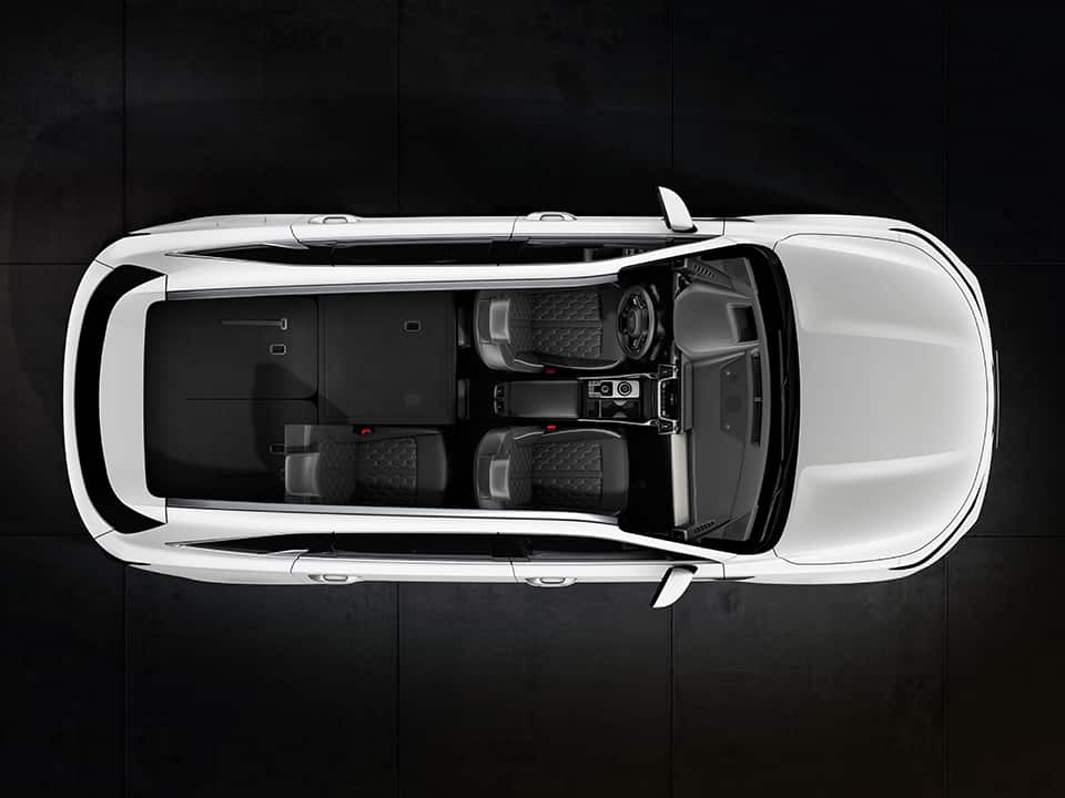 L’intérieur, moderne et qualitatif, disponible avec 7 places, a été pensé pour faire de chaque trajet une expérience hors du commun. Du jamais vu : un éclairage d’ambiance unique, le raffinement de sièges en cuir bicolore noir et gris, une garniture de tableau de bord effet satin avec gaufrage 3D et un motif semi-chrome, le tout ponctué d’accents noirs brillants. Ajoutez un espace hyper généreux et une ergonomie stylée, et vous ne résisterez pas.
