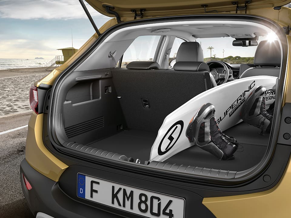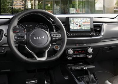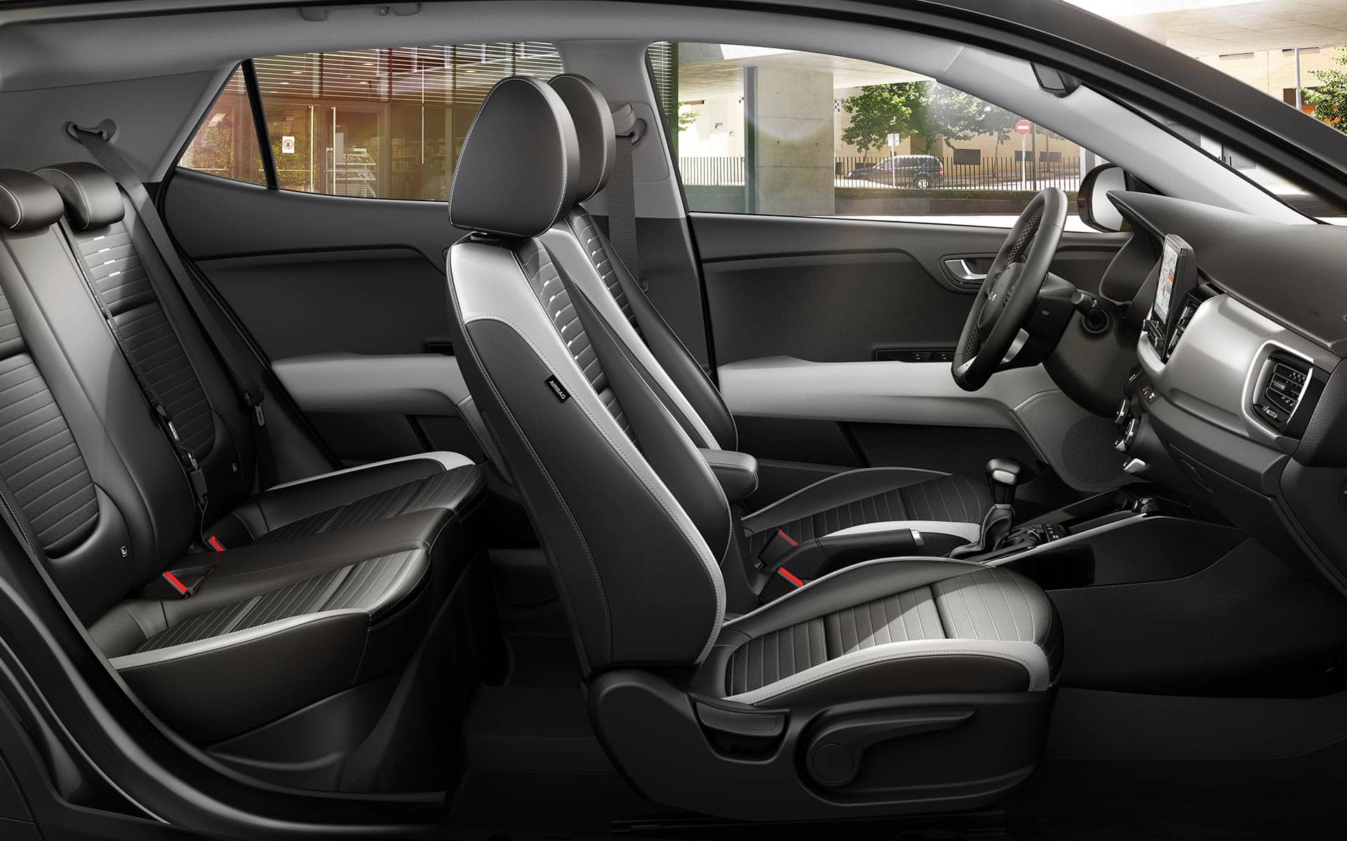 Embarquez et laissez-vous transporter par l’intérieur élégant de la nouvelle Kia Stonic. Choisissez des sièges en tissu bicolore gris ou en simili-cuir avec gaufrage gris, selon vos préférences. Prenez le contrôle du volant en D luxueux en cuir. Vos yeux se régaleront des inserts de couleur tendance et des détails comme les surpiqûres contrastées et la garniture en noir brillant de la console centrale.