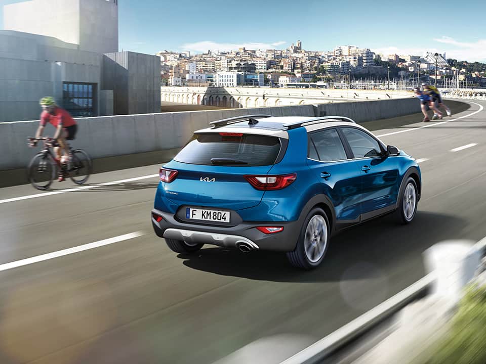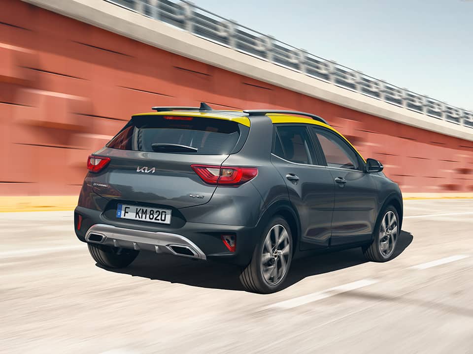 La Kia Stonic avec son design musclé est conçu pour ceux qui font de chaque voyage une aventure. Des lignes aérodynamiques et une calandre audacieuse ajoutent à votre individualité. Tout comme la lunette arrière avec couvercle de spoiler et une grande entrée inférieure pour aspirer l'air de refroidissement. Des ailes puissantes, un pare-chocs et une plaque de protection régulant le flux d'air complètent ce crossover urbain cool.